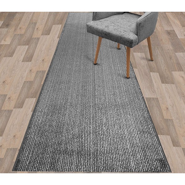 Custom Length Cut to Size Wide Width Carpet Runner Rug for Hallways, Skid Resistant Latex Rubber Backed, 31 inch Wide X Customized Length, Stripe Grey, 31 inch X 7 feet