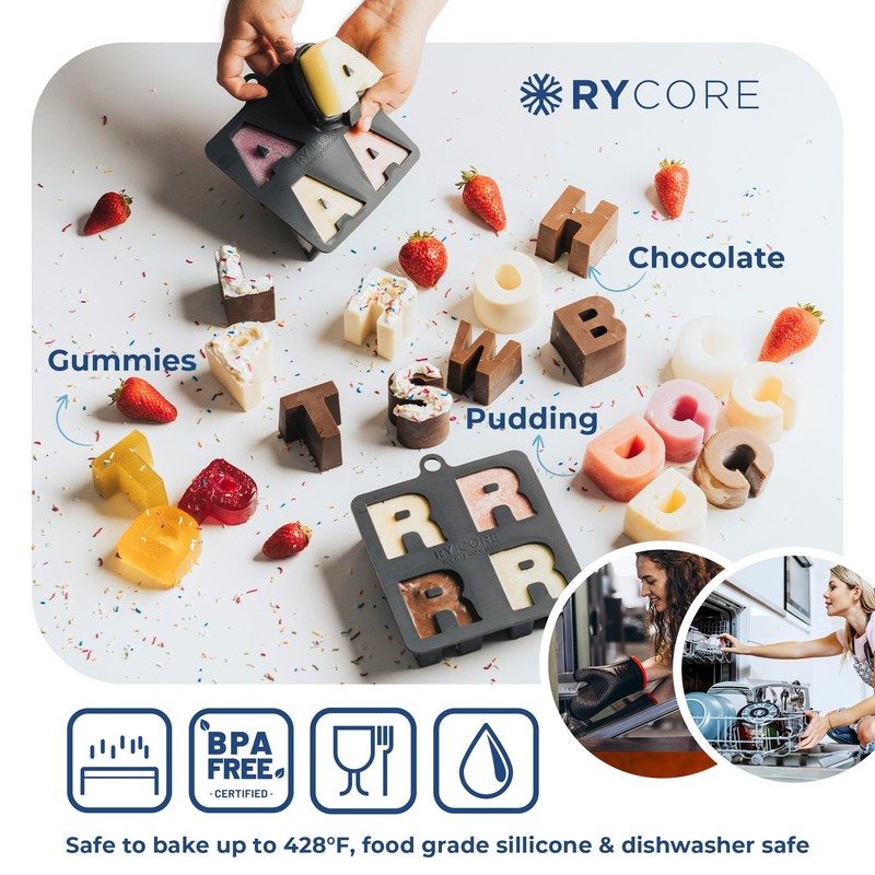 - EASY TO USE AND CLEAN: The flexible and non-stick fondant molds silicone material allows for easy release of the ice cubes or chocolate creations. You can simply pop them out by pushing from the bottom of the tray. Product dimensions 6"L x 6"W x 3"H. Aprox 2oz-2.5oz each letter.