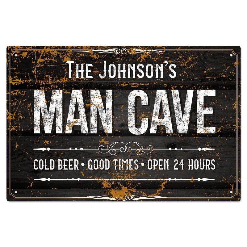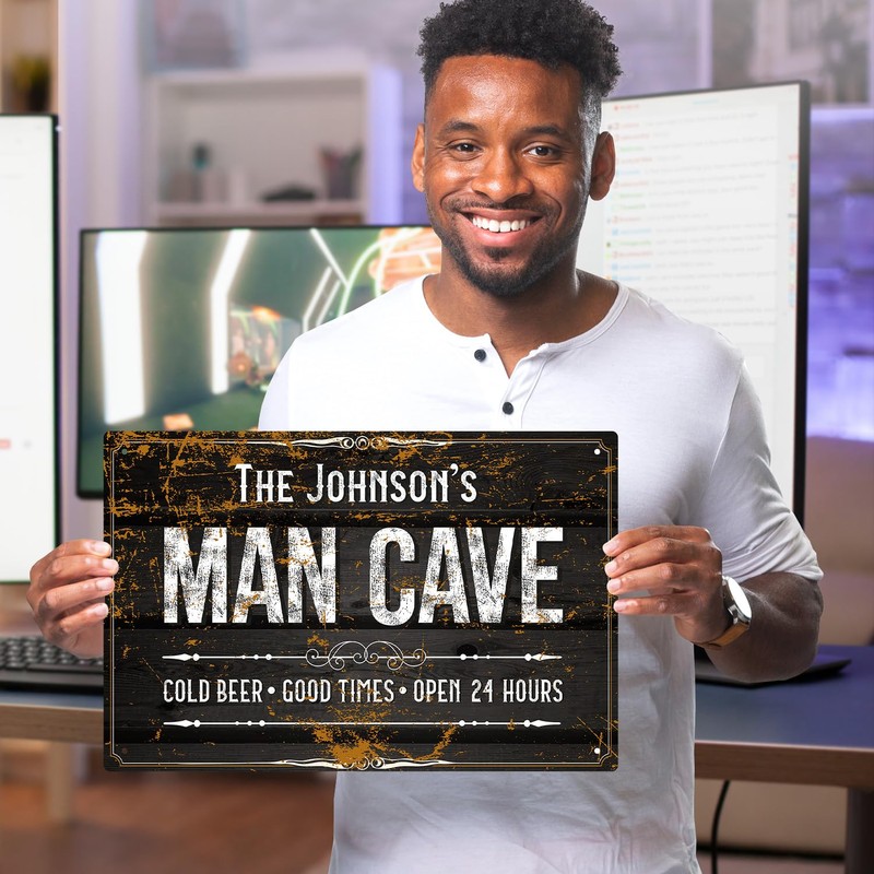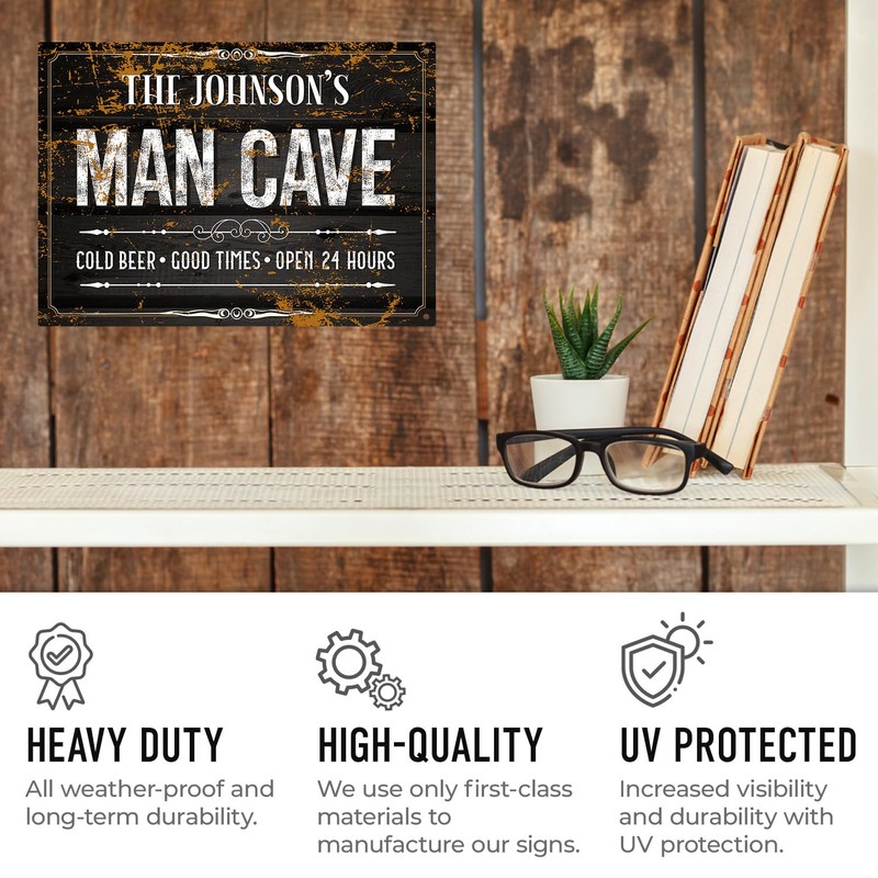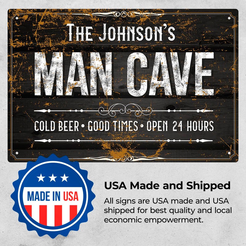 Custom Man Cave Sign, Personalized Name for Gift, Home Bar Man Shed Wall Décor Sign, 12X18 Inches, ACM, Fade Resistant, Made in USA