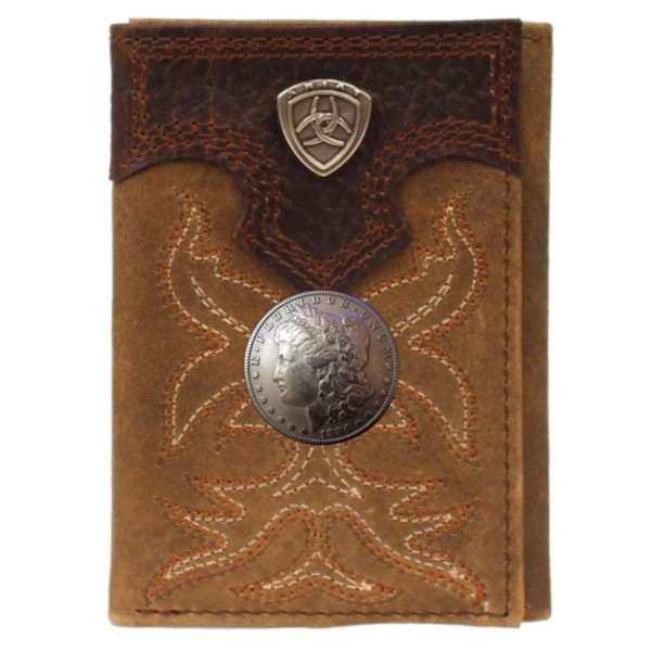 Custom Morgan Dollar Heads Tan Premium Shield Tri-fold Leather Wallet