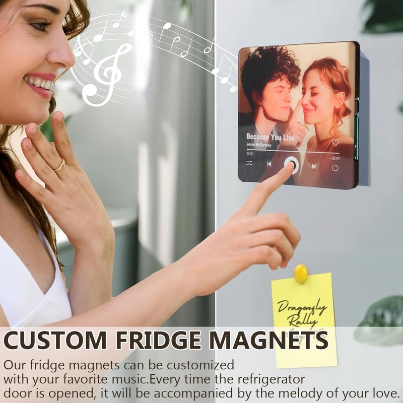 - Built-in Music Player: With a built-in music player, this custom fridge magnet lets you enjoy your favorite tracks directly from your refrigerator. And you can change the music at any time, if you get tired of listening to a song, you can change to a new song and record it in, just by connecting the magnet to your computer using a USB cable
