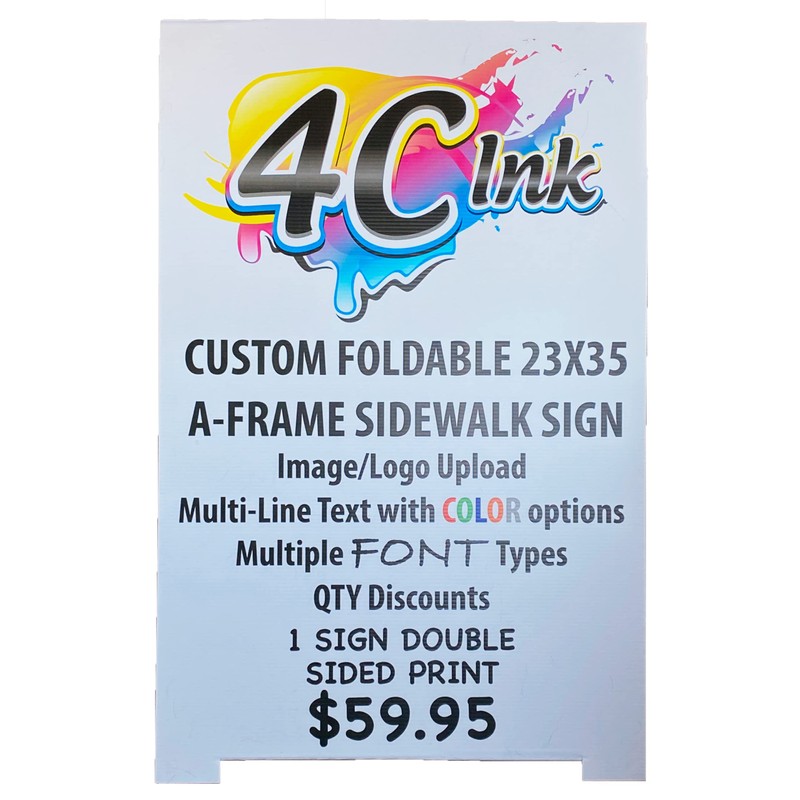 Custom Printed Folding Coroplast A-Frame Sidewalk Sign - Large 23x35" Tall - Your Custom Design. Printed 2 Sided