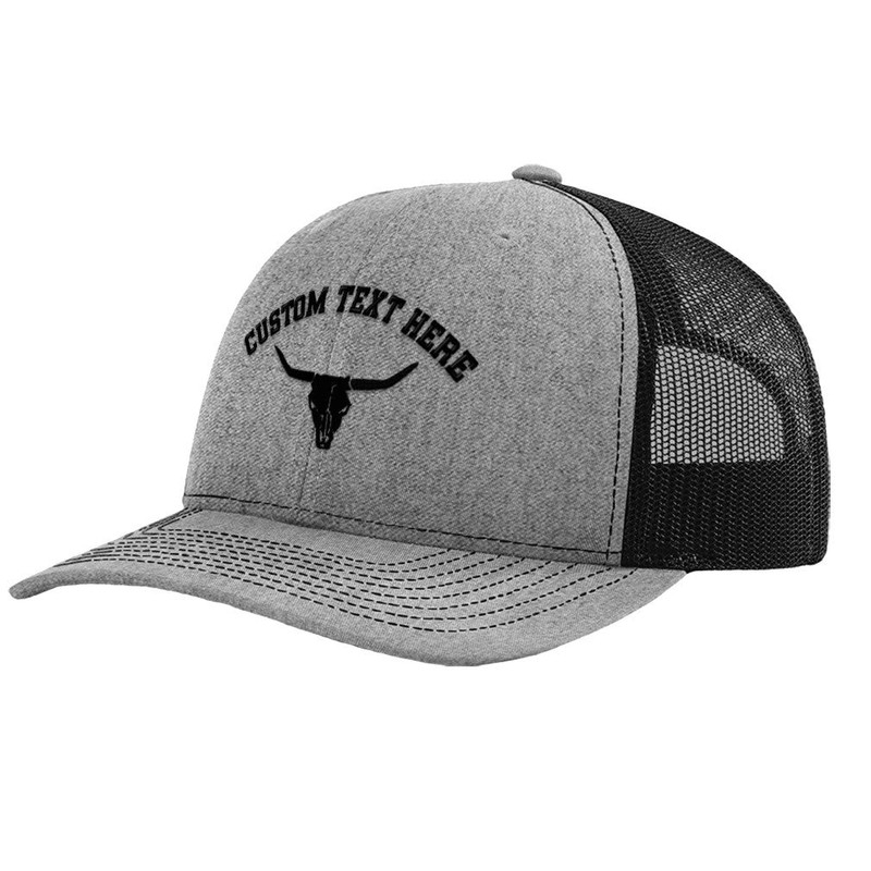Custom Richardson Trucker Hat Cow Skull A Embroidery Polyester Baseball Cap Snapback Heather Grey Black Personalized Text Here