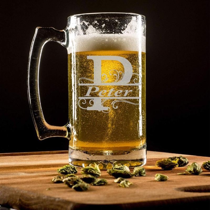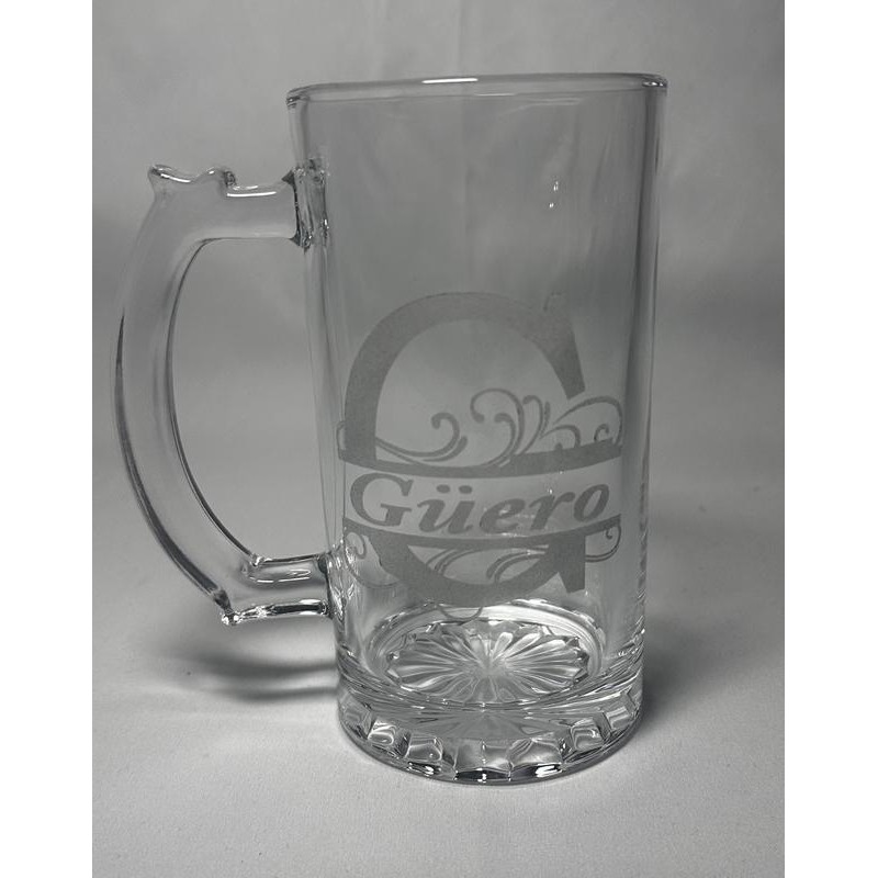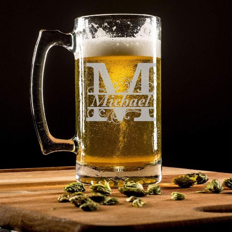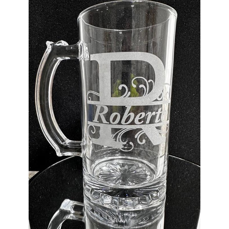Custom Roman flourish Monogram -Engraved Tall Mug - Reusable - Stylish Beer Mug - Personalized Gift - Custom Present - Glass cup - Drinking Glasses - Design: H