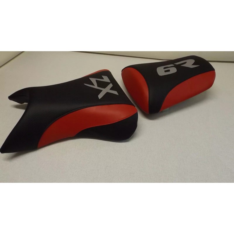 CUSTOM SEAT COVERS KAWASAKI ZX6R FRONT& REAR BLACK/RED/SILV