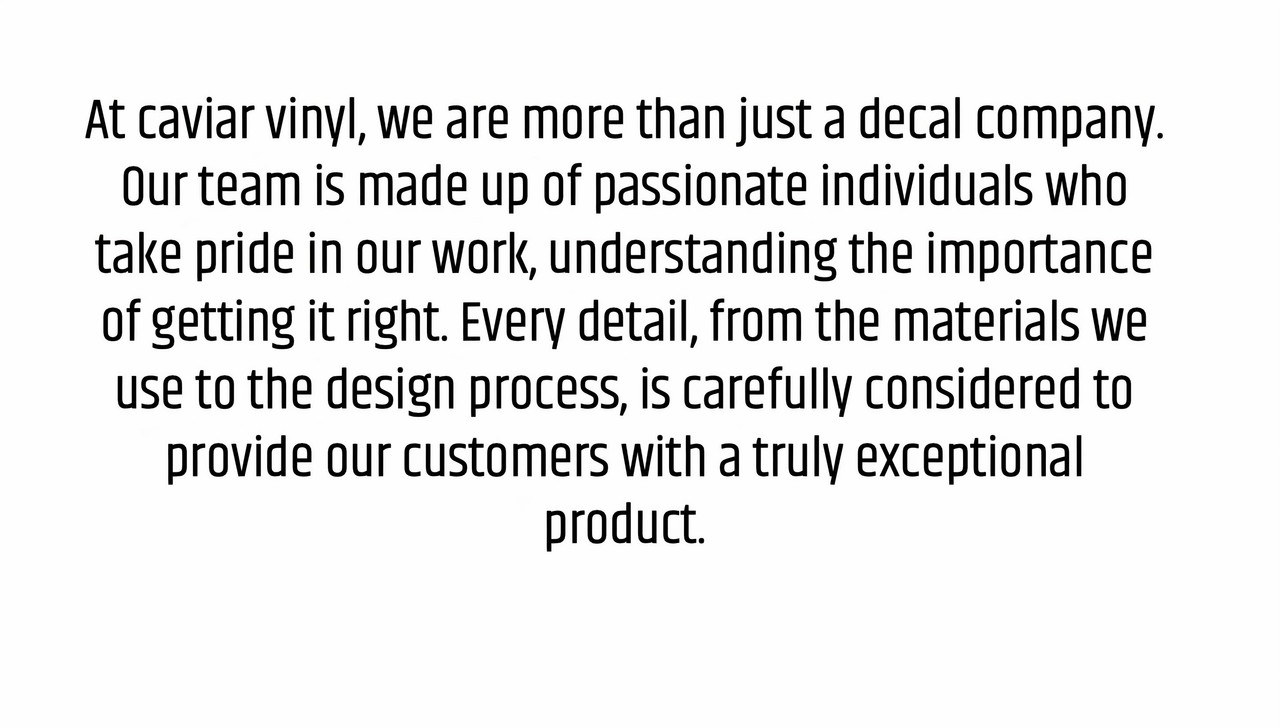 Why Choose Us? At Caviar Vinyls our team ensures that each wording and lines are cut perfectly to match how they are intended to look, ensuring you that there wont be any mistakes, we wouldn't want you to look bad at the car meets. So why pay 200-500 for decals when you can pay fraction of the price.