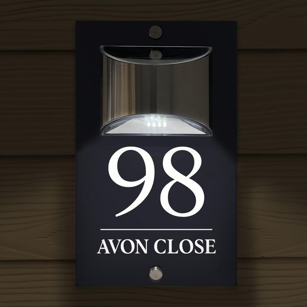 - SOLAR ILLUMINATION: Our Anthracite House Number Sign now includes an solar light, ensuring your address remains visible day and night. The built-in solar panel charges during the day and automatically illuminates your sign at dusk.