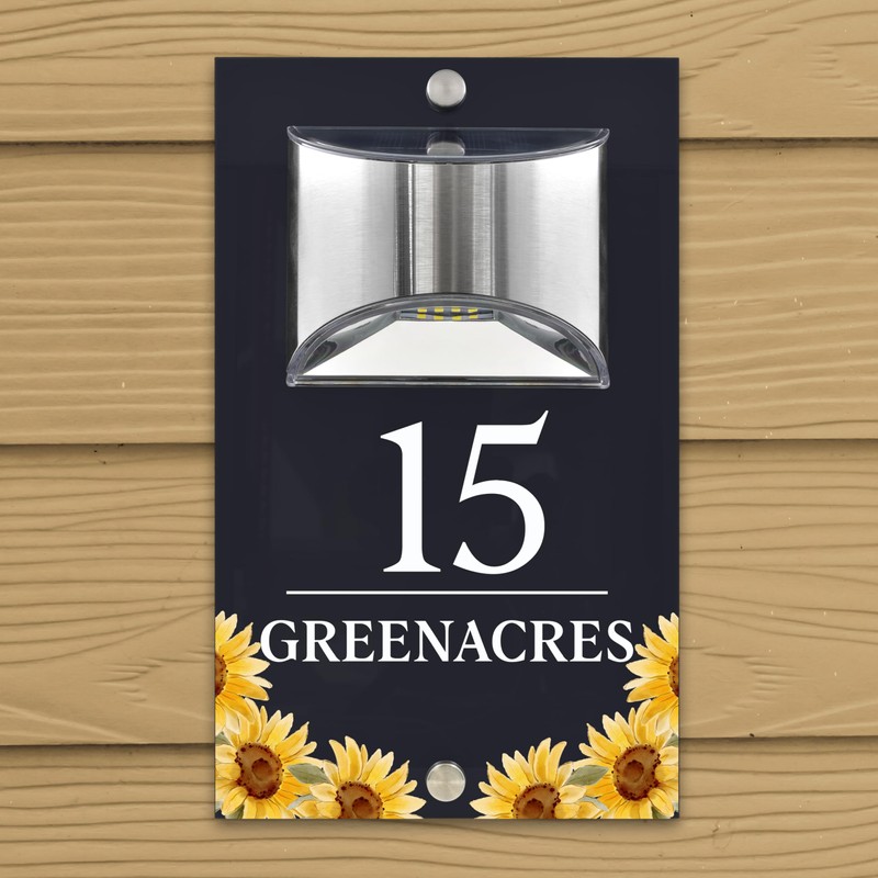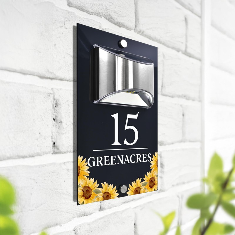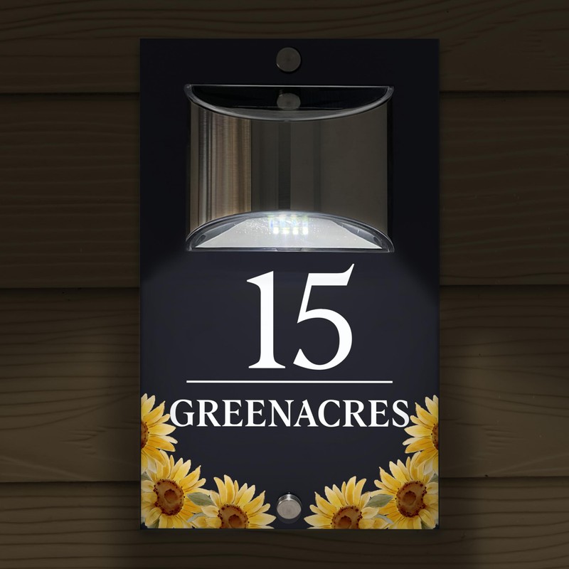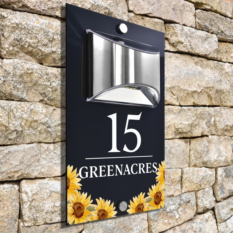 Custom Signs Solar Illuminated Modern Anthracite House Number Sign 24cm x 14.5cm Sunflowers Bottom Design