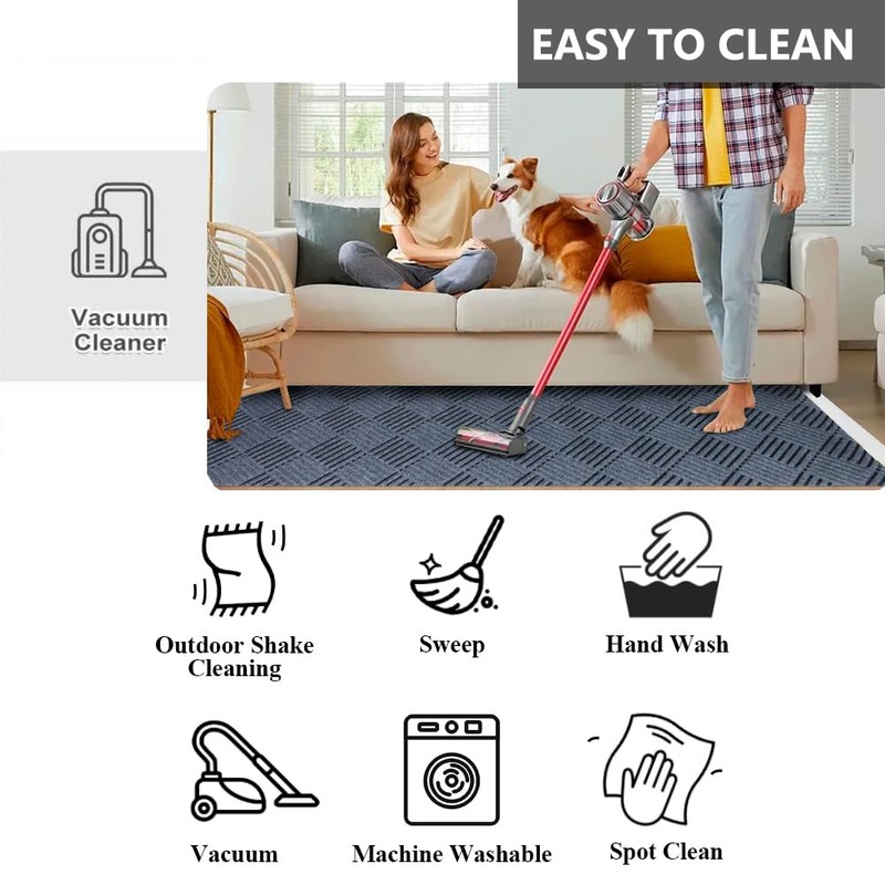 - Easy to Clean - LITA indoor outdoor mats outdoor are easy to clean. You only need to vacuum with a handheld vacuum cleaner, sweep the floor with a broom, or pat outdoors or on a trash can. For deeper cleaning, use a garden hose to rinse the mat outdoors. Before the next use, allow the mat to air dry sufficiently.