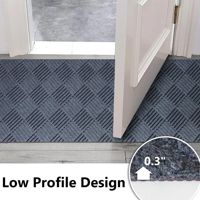 - Non-slip & Low Profile - Nature rubber backing and raised pattern non-slip backing made the door mats can grip on indoor and outdoor floor type. Non-Skid backing on dry floor, helping it to stay in place on your floor, so it won't slip or scuff floors. Pets and kids running and sprinting safely in daily playing, and won't slip or scuff floors. And low-profile design won't stuck door, ideal for doors or entryways.