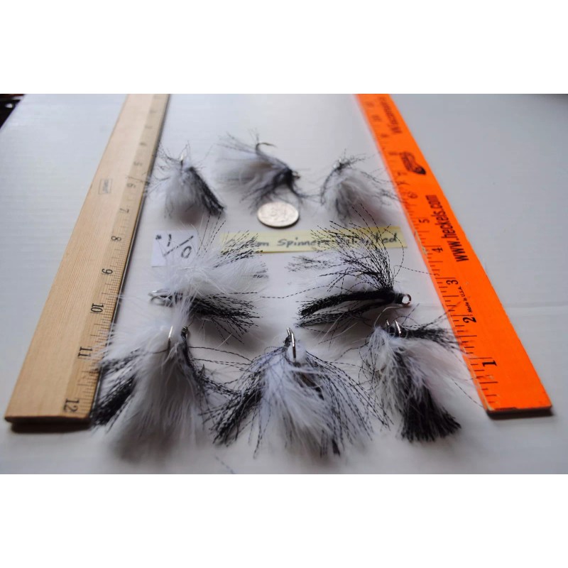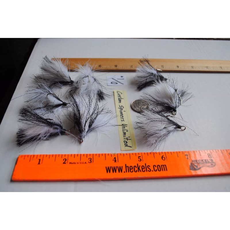 Custom Spinners Unlimited 8 Tied Bucktail Dressed Treble Hooks Size 1/0 BLACK TINSEL FLASH / WHITE FEATHER