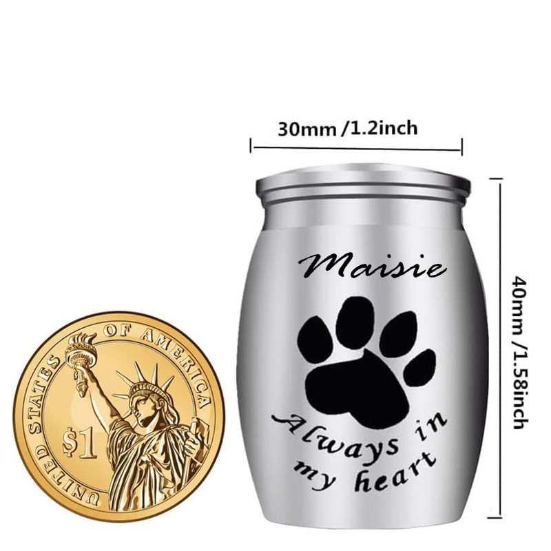 - Compact Size: Small and discreet, ideal for keeping your pet's ashes close. Size:1.18"L x 1.18"W x 1.58"H