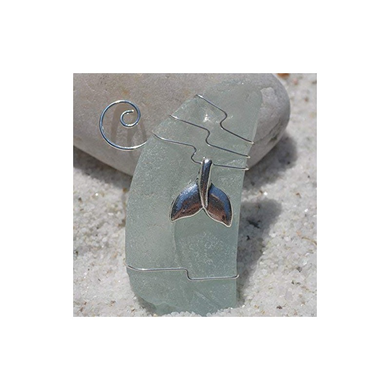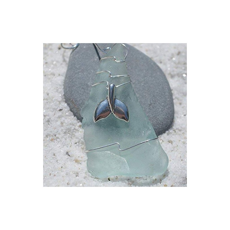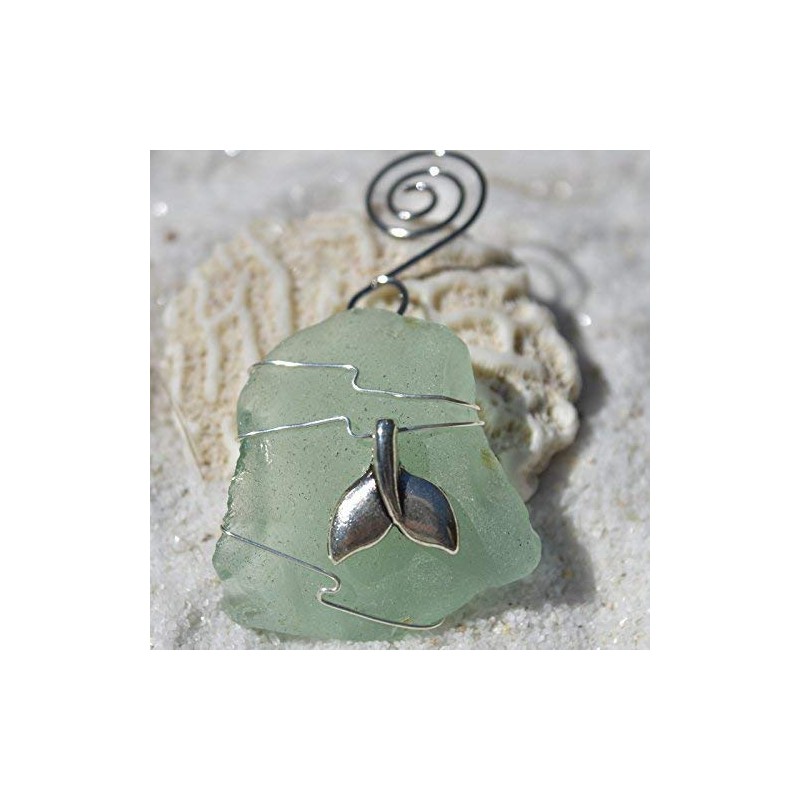 Custom Surf Tumbled Sea Glass Ornament with a Silver Whale's Tail Charm - Choose Your Color Sea Glass Frosted, Green, and Brown.
