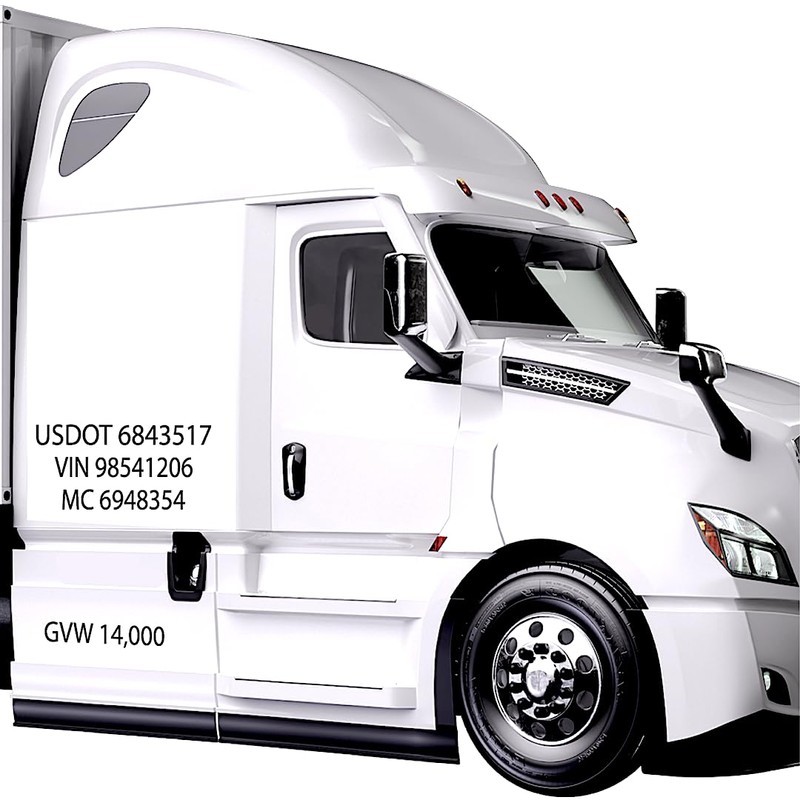 Custom Truck Numbers & Letters (2 Sets) USDOT, Company Business Name, DOT, GVW, VIN, CA, MC, Vinyl Lettering Decal, Registration Sticker