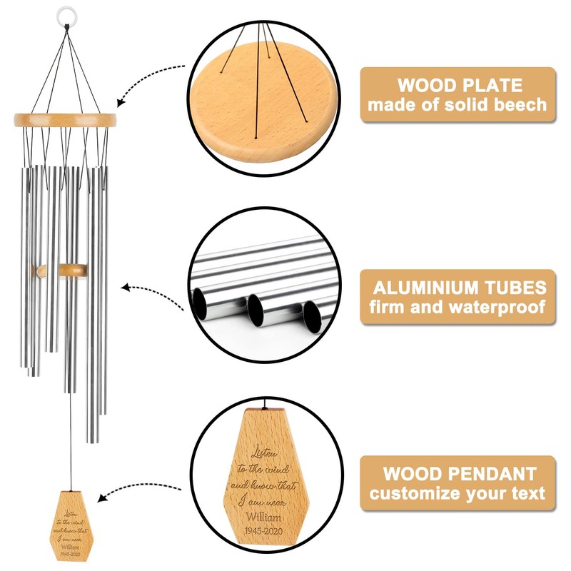 - Fully Custom Wind Chimes - With your personalized most thoughtful text on wind chimes, it is definitely the meaningful ornament and excellent gift for expressing your thoughts, concern and wishes for loved one.