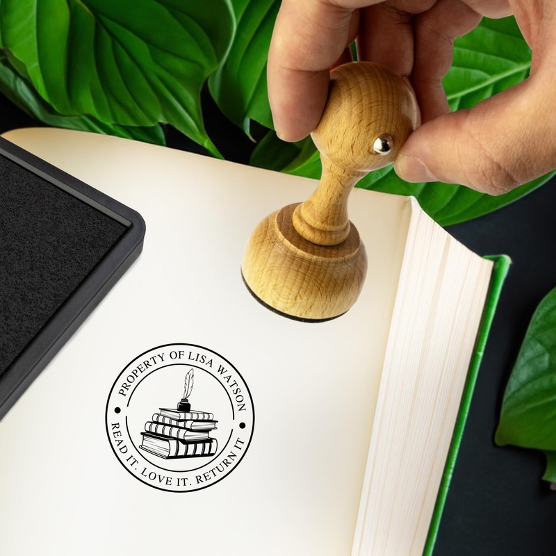 Custom Wood Library Hand Stamp - Style 069 - Great for Customizing Books, Ex Libris, Personalized Journals and More.