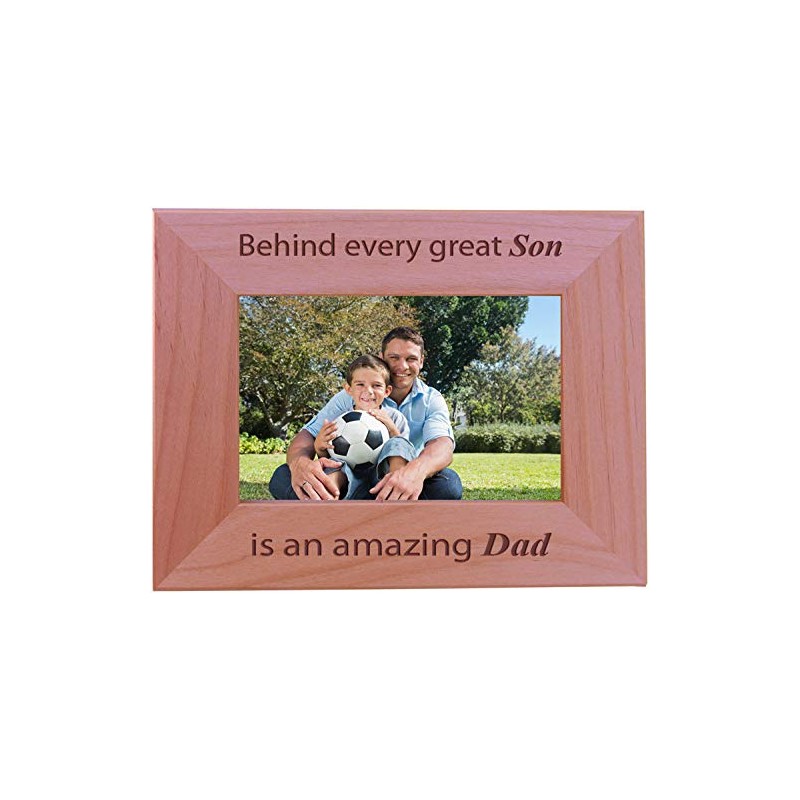 CustomGiftsNow Behind Every Great Son is an Amazing dad - Engraved Wood Picture Frame (4x6 Horizontal)