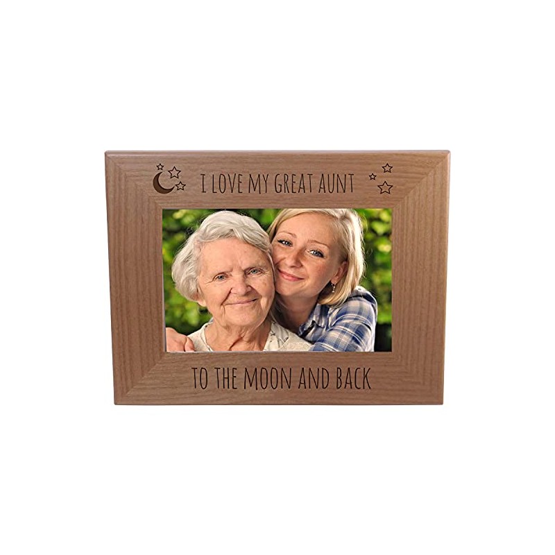 CustomGiftsNow I Love My Great Aunt to The Moon and Back - Engraved Natural Alder Wood Hanging/Tabletop Picture Memory Family Memorial Photo Real Wooden Frame