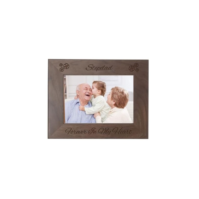 CustomGiftsNow Stepdad: Forever In My Heart Laser Engraved Genuine Walnut Wood Hanging/Tabletop Personalized Group Family Photo 5x7 Picture Frame
