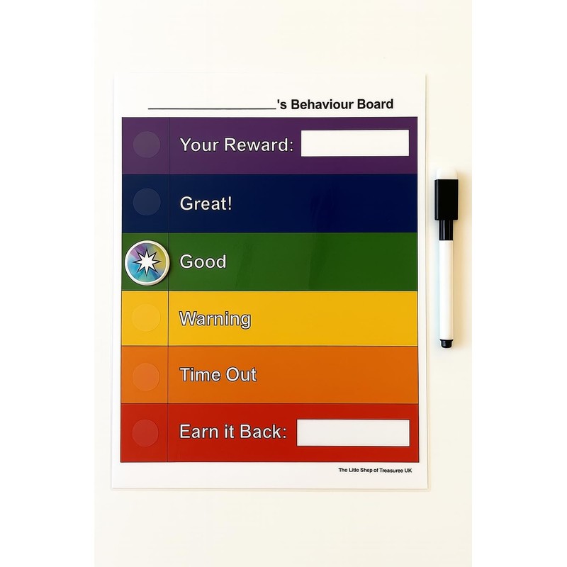 - 📦 Includes: 1 laminated behaviour board 1 dry wipe marker 1 hook & loop level