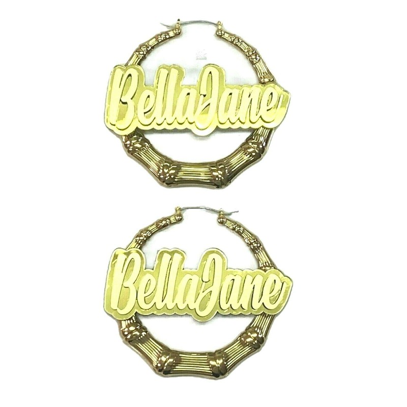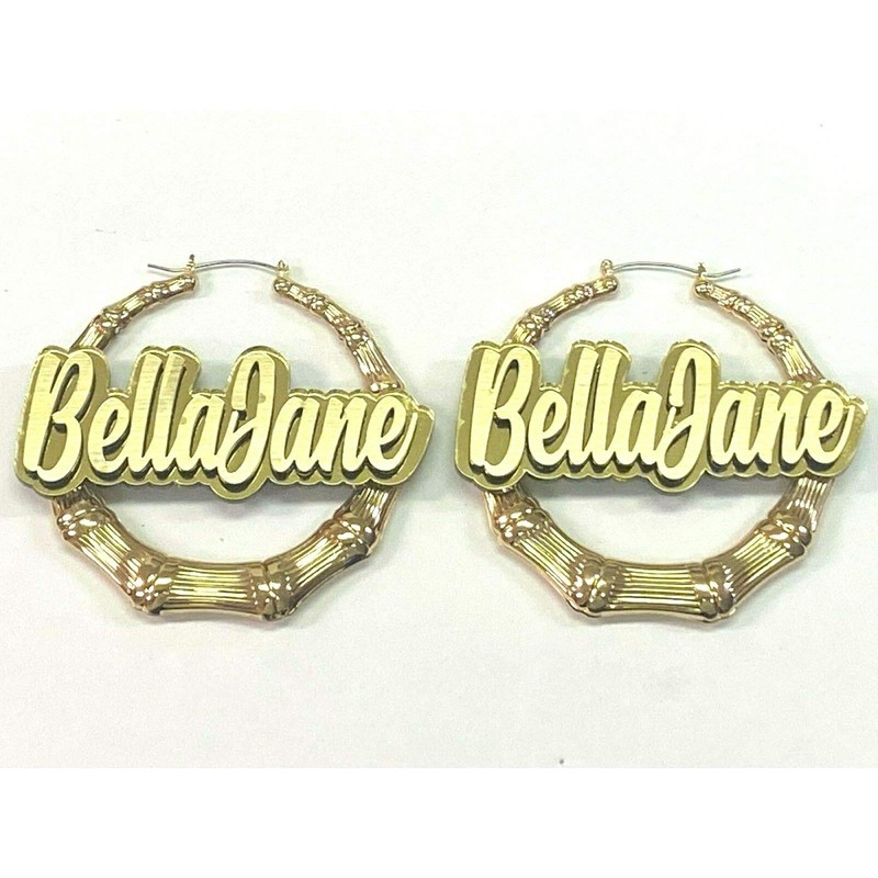 - Personalized Custom Gold Hoop Earrings Name Plate Laser Cut Design Stunning Look - Quality, Attractive Gold Bamboo Earrings - A Great Gift