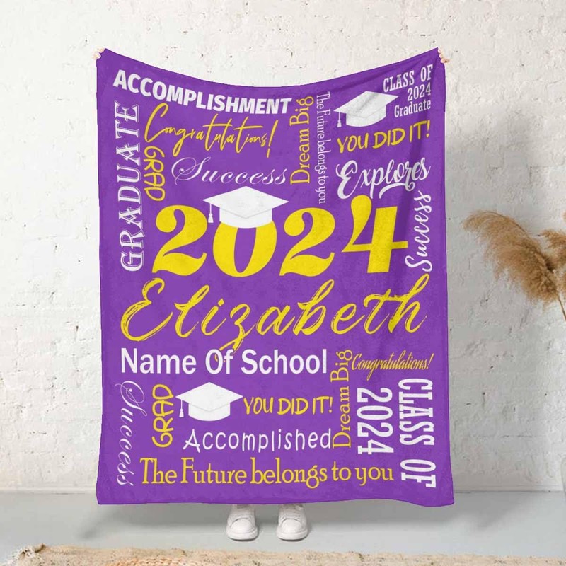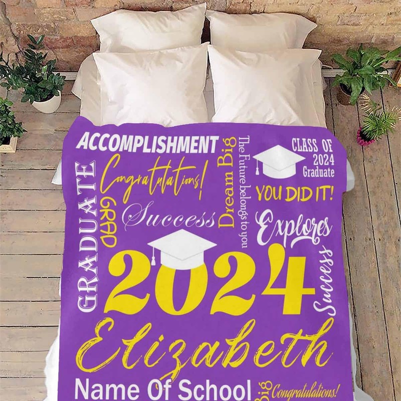 Customize Graduation Blanket for Daughter from Mom, Graduate Blanket Class of 2023 Senior Personalized Throw Super Soft Purple Graduation Blankets for Sister Teen Girl Granddaughter Niece 30x40