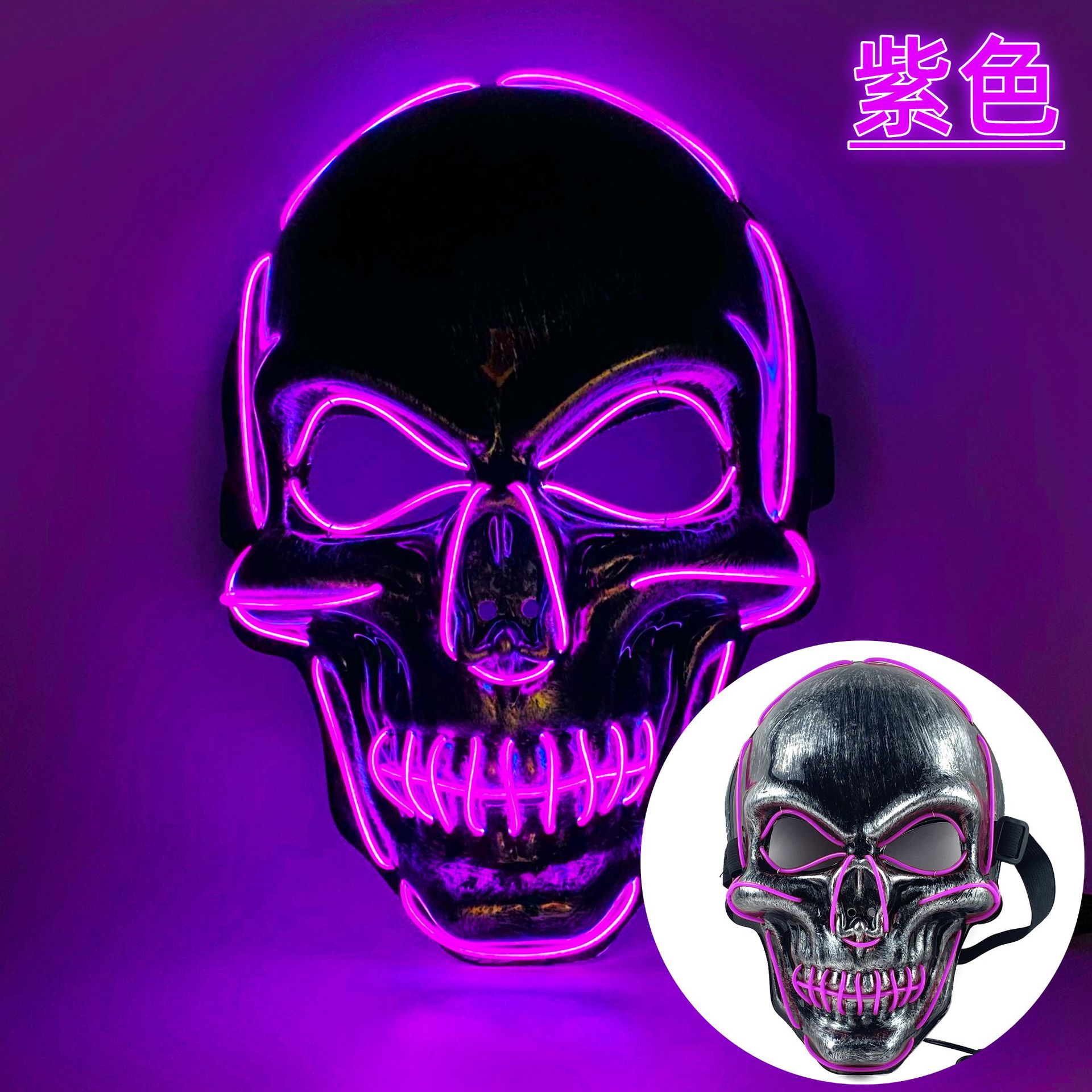 Customized 2022 Halloween LED Luminous Mask for Zombie Parties Purple - Skull 10ea