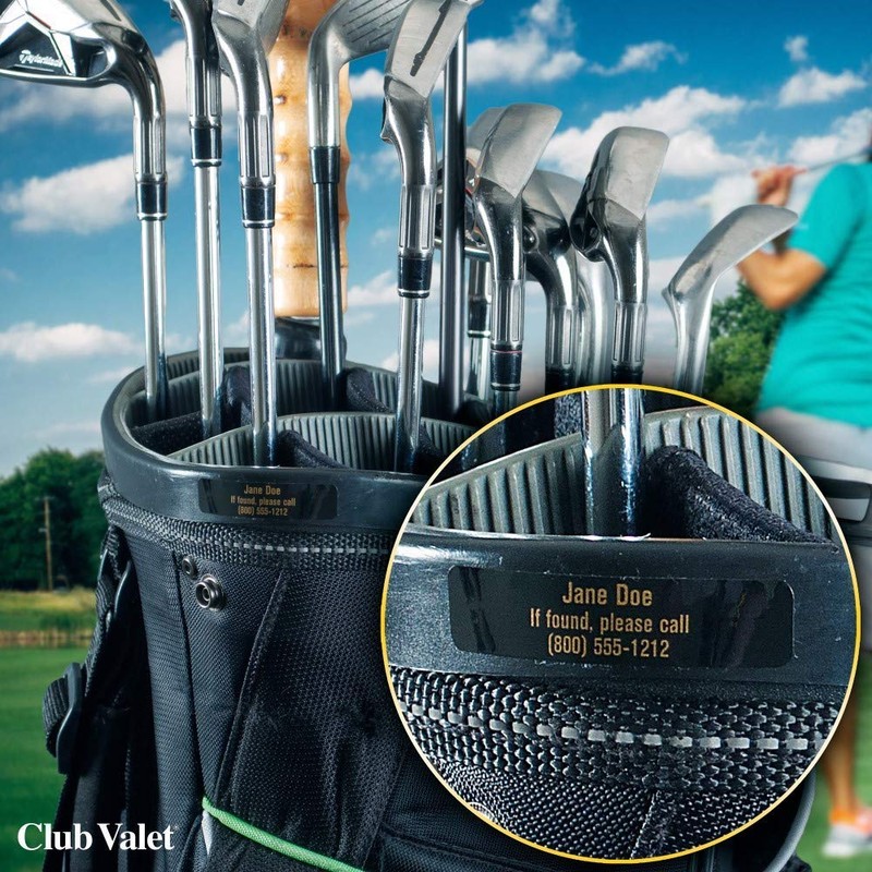 - Gift to a Friend In Need: Personalized name labels for Golf Clubs make a very thoughtful gift. A gift message printed on the label sheet can be added at no additional charge. Golf Club ID labels are wonderful to have when your day gets hectic and you’ve lost a possession and had it returned. Stay organized and stay safe with sporty ID name tag labels.