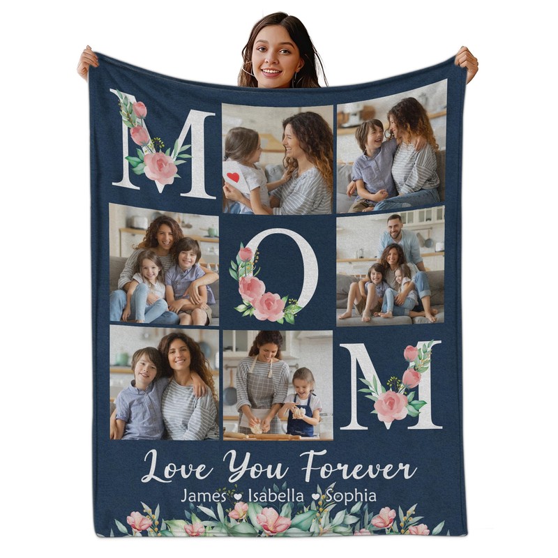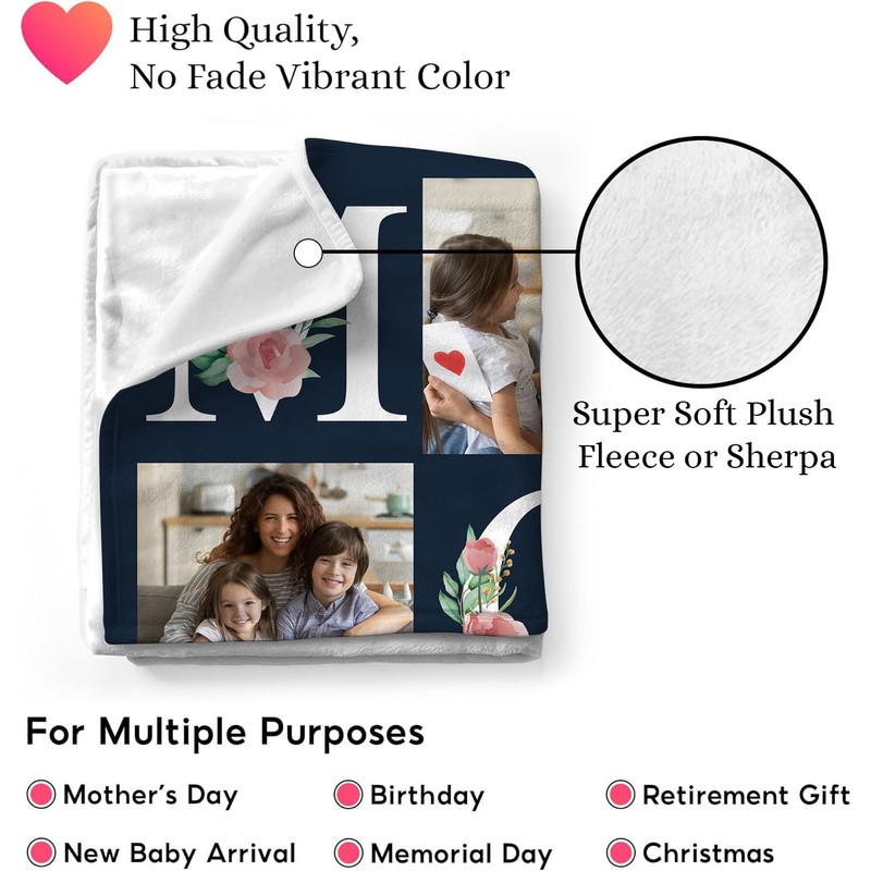 Personalized Blanket with Pictures Gifts for Mom: Surprise Mom on special occasions like Mother's Day, birthdays, and holidays with custom mom blankets with photos and text from her children. Show your love and appreciation with this heartfelt gift.