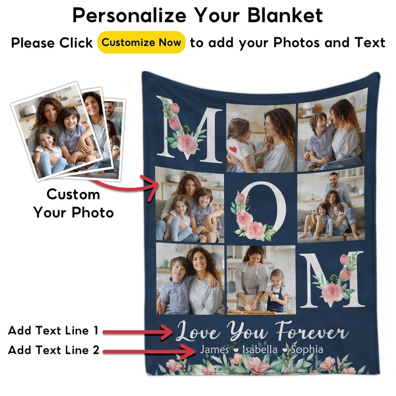 Customized Mom Blankets with Photos, Custom Memorial Blankets with Photo Text, Customizable Blanket with Pictures, Personalized Mom Blanket Gifts for Adults from Daughter Son on Mothers Day Birthday
