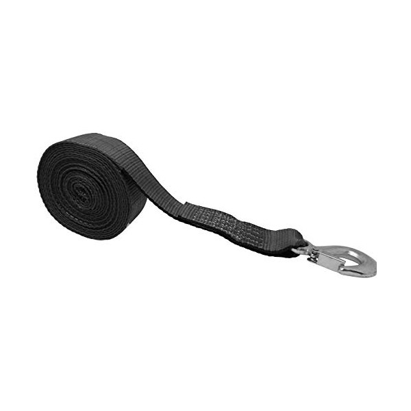 CustomTieDowns 2 Inch x 16 Foot Heavy Duty Replacement Winch Strap, Boat Hook On One End, 1 Inch Loop On Opposite End for Attachment to Winch. (Black)