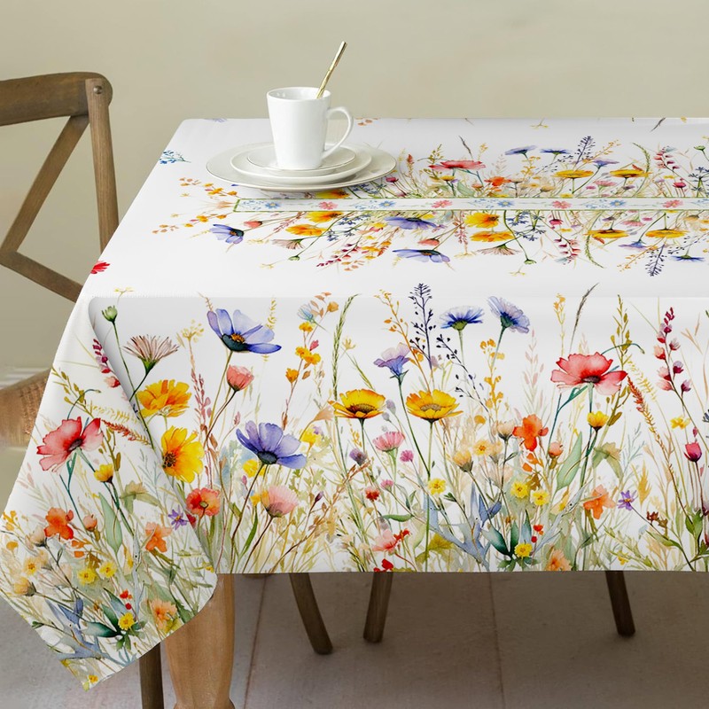 - Material and Improved Process - The spring tablecloth is made of 100% premium spun polyester which is soft and durable and has a water-resistant coating on the surface.