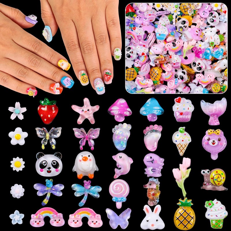 - Easy To Use - These kawaii nail charms are made of high-quality resin and adopt 3D design. The bottom surface is flat and can be easily pasted, not easy to peel off. The color is bright, the surface is smooth.