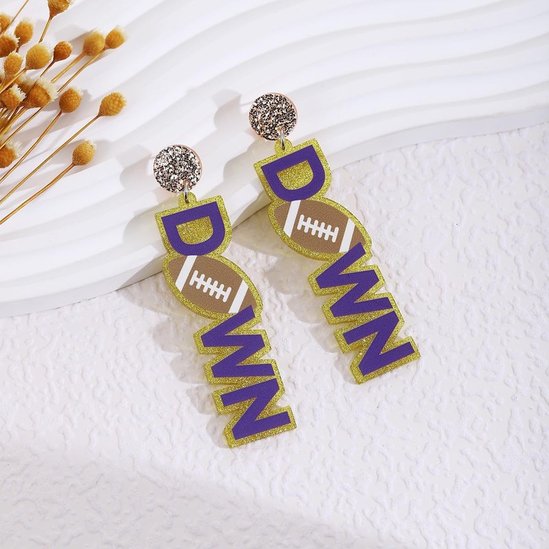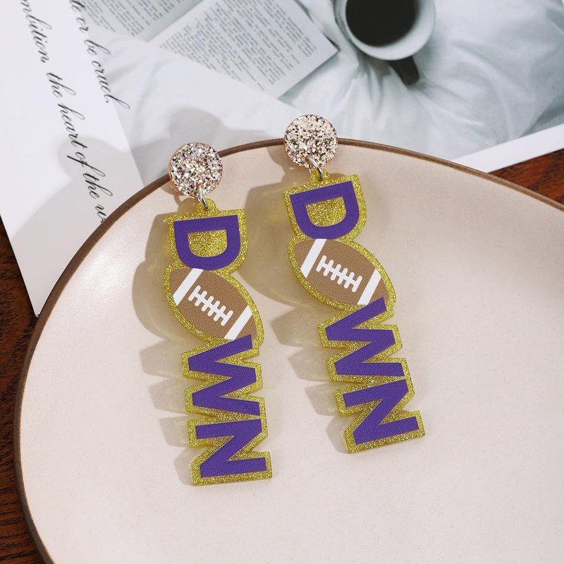 Cute Acrylic Football Earrings Purple Down Letter Pendant Sports Jewellery Statement Party Game Day Gifts for Women, Acrylic, No Gemstone