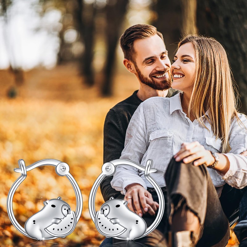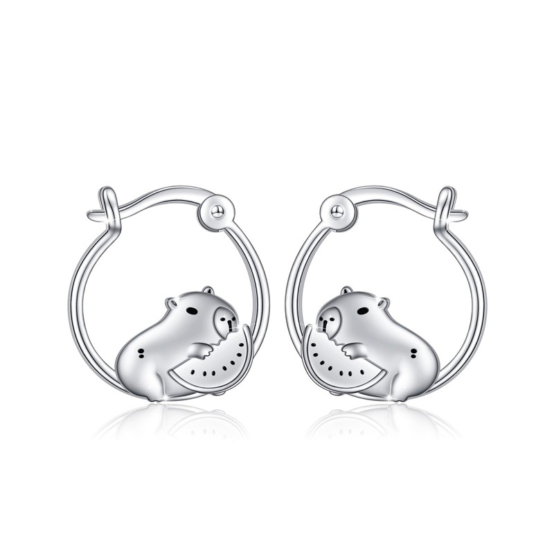 - 【Material】: This Capybaras hoop earrings for women are made of 92.5% real silver which is hypoallergenic, tarnish resistant. Very suitable for long-term wear, especially sensitive skin.