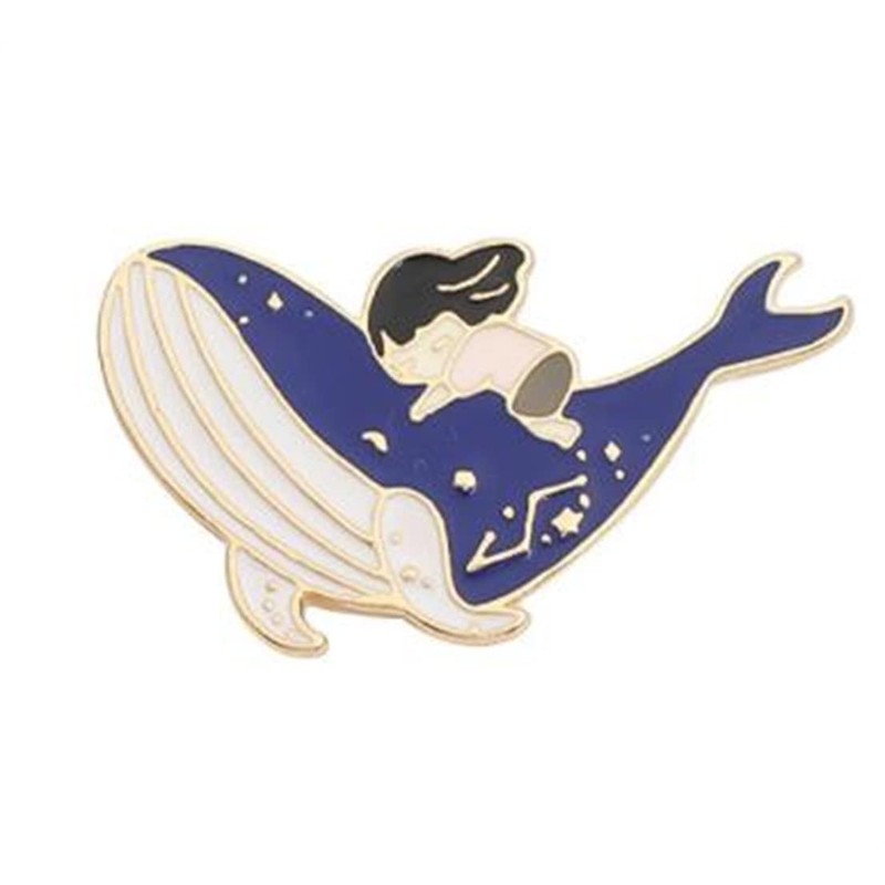 Cute Animal Enamel Brooch Pin Tells a Story of Whale and Girl Brooch Pins Enamel Metal Badges Lapel Pin Brooches Jackets Jeans Fashion Jewelry