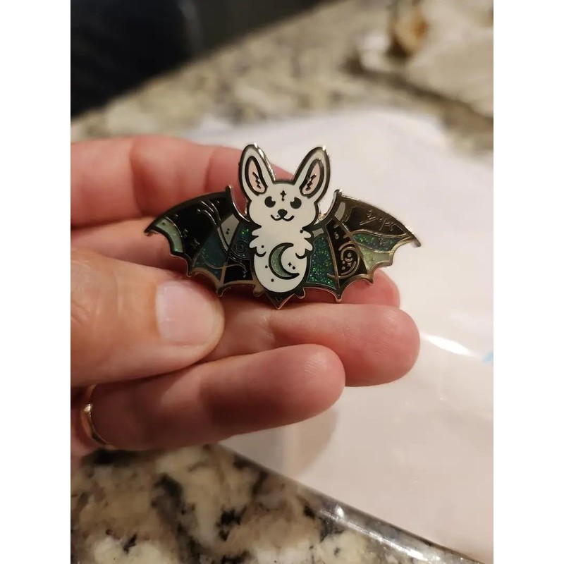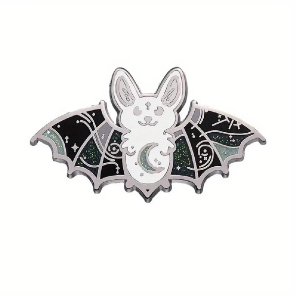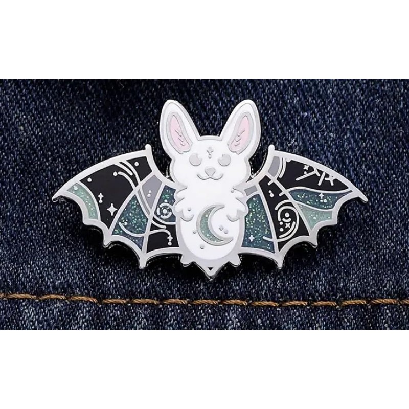 Cute Bat Silver and Green Moon Enamel Pin