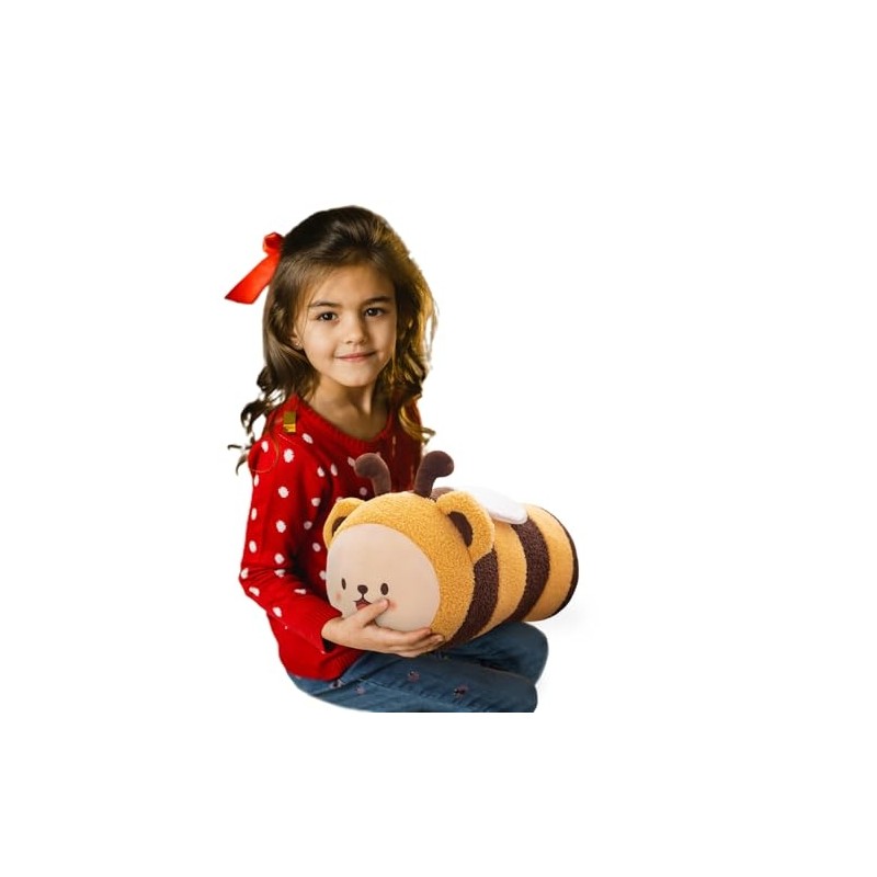 Cute Bee Stuffed Animal Toy Plush Pillow, Kawaii Plushies Cylindrical Body Pillow Stuffed Toy, Super Soft Cartoon Hugging Toy Gifts for Bedding, Kids & Girls Sleeping (Yellow,Small - 11 inch)