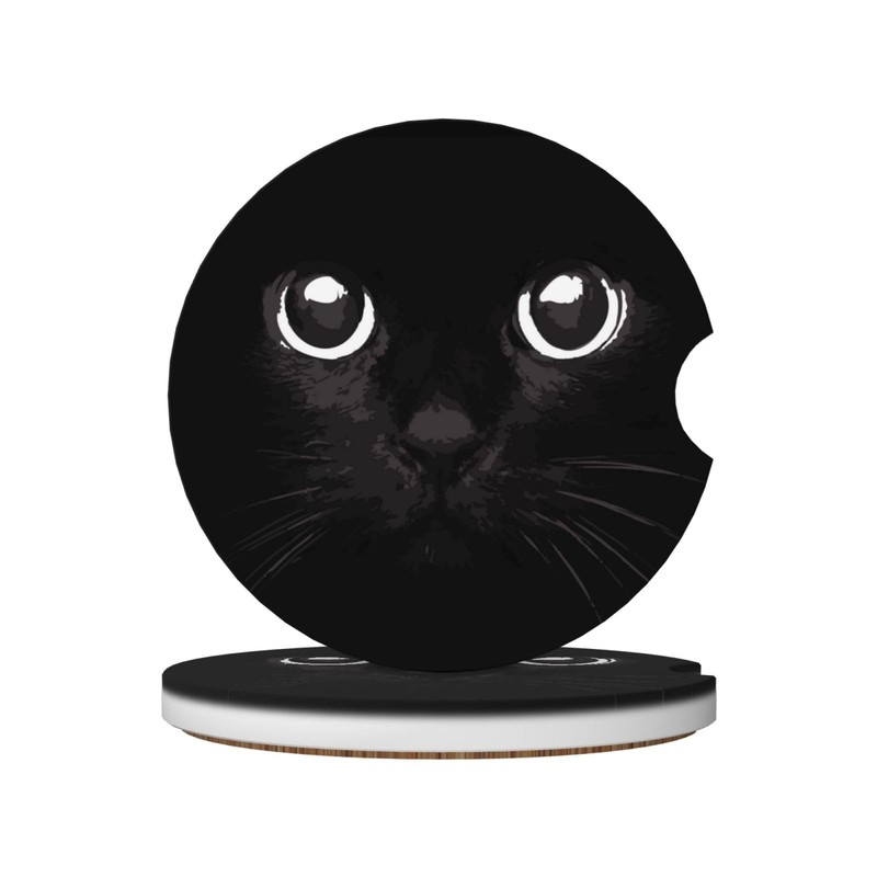 Cute Black Cat Car Coasters for Drinks Absorbent, 2 Pack 2.56" Cup Holders Ceramic Stone & Non-Scratch Cork Base Coasters, Auto Accessories for Women & Men