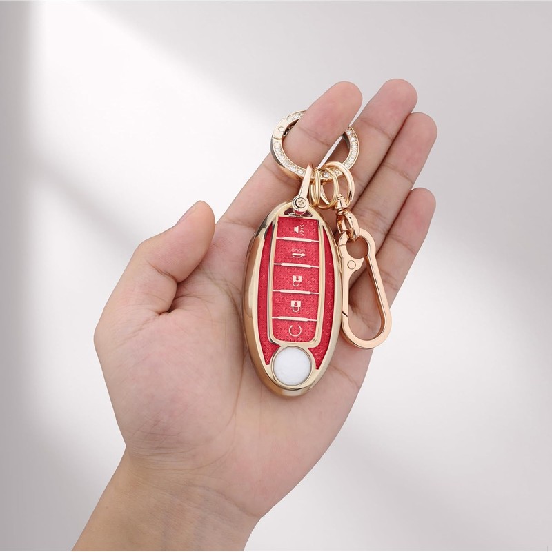Cute Bling Key Fob Cover for Nissan 5 Buttons, Diamond Cut TPU Case with Keychain, Protective Shell for Altima Sentra Rogue Pathfinder Murano Armada Maxima Versa Smart Key,Red