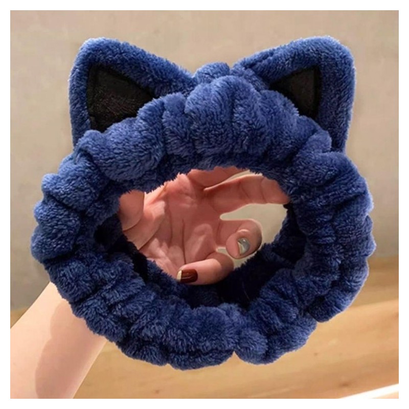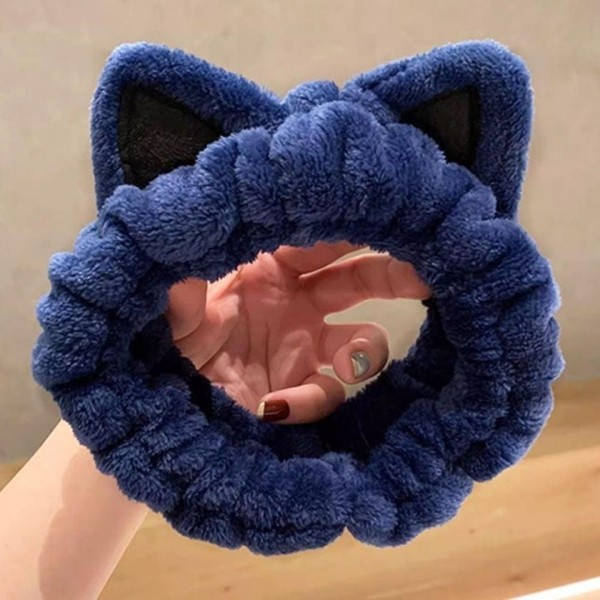 Cute Blue Face Washing Headband and Wristband Set Cat 2ea