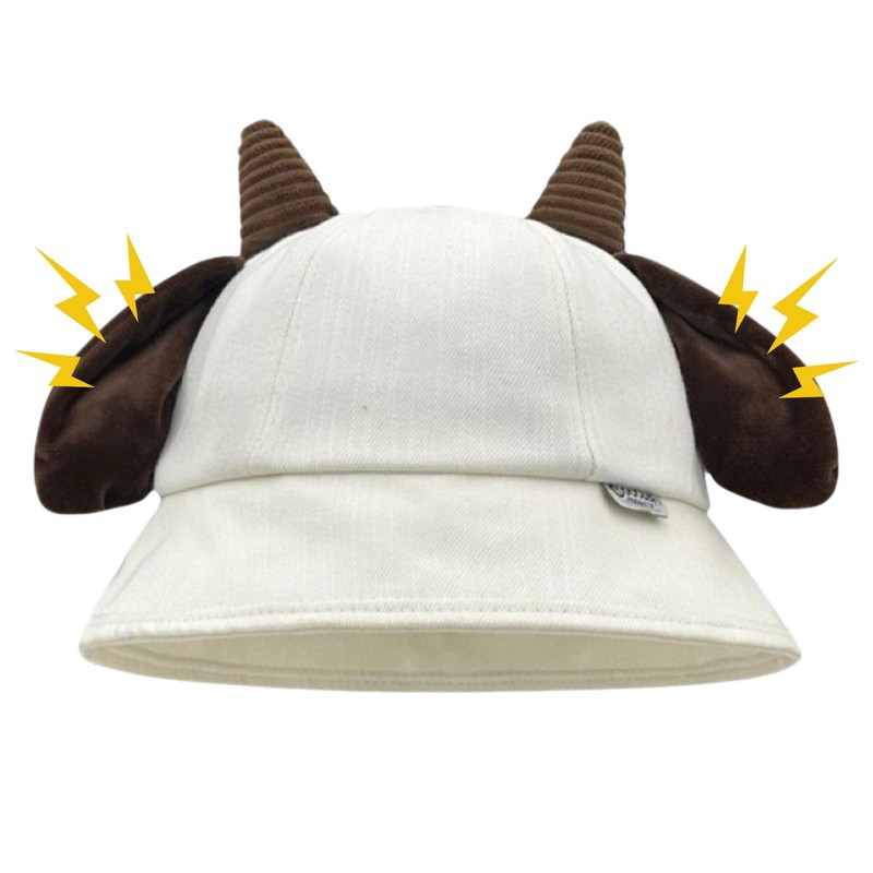 Cute Bucket Hat with Goat Horns and Ears Summer Sun Hat for Women Novelty Fishing Cap Men Rave Hat Theme Party, White, Large