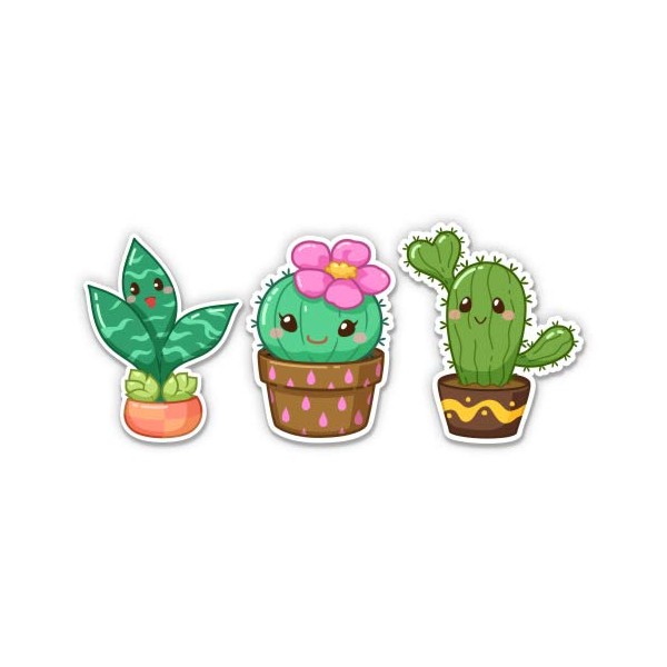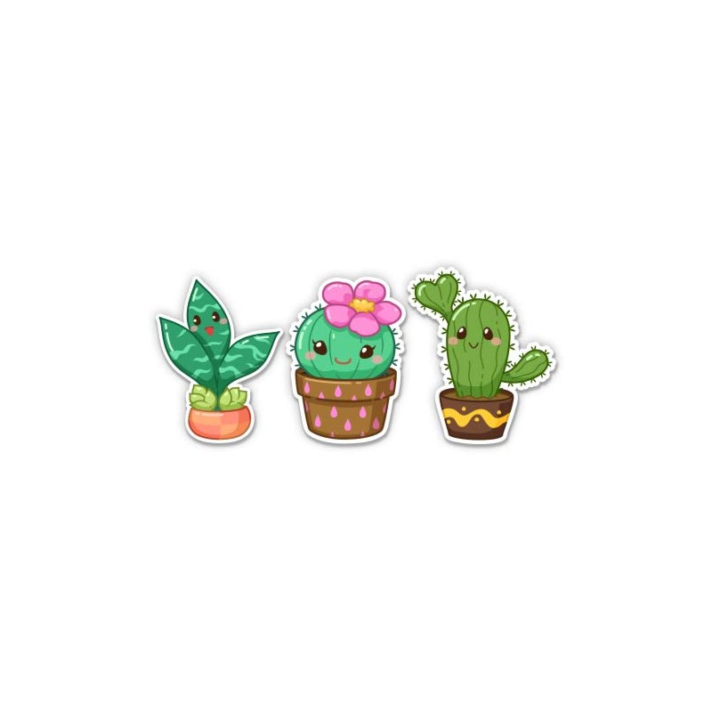 Cute Cactus in Pots - 3" Each Vinyl Stickers - for Car Laptop I-Pad - Waterproof Decals