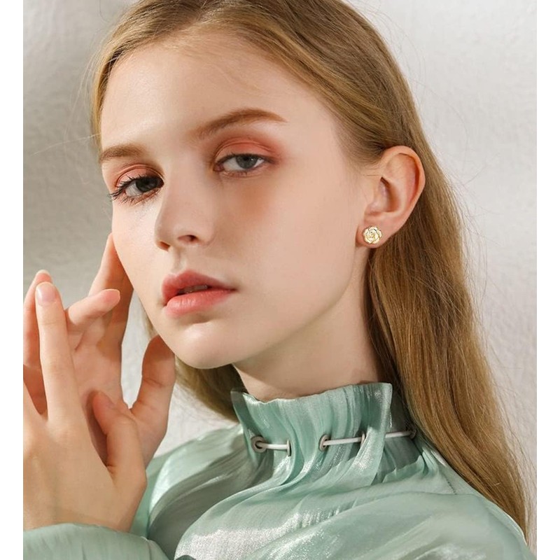 - Camellia flower shape earrings with a layer sense. Camellia is the most stunning, belongs to love at first sight, unforgettable. The pearl version is more fashionable commuting, giving a modern sense of elegant.