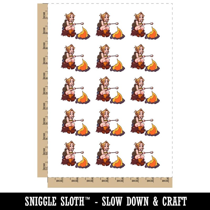 Cute Camper Girl Roasting Marshmallows Camping Fire Temporary Tattoo Water Resistant Fake Body Art Set Collection - 15 2" Tattoos (1 Sheet)