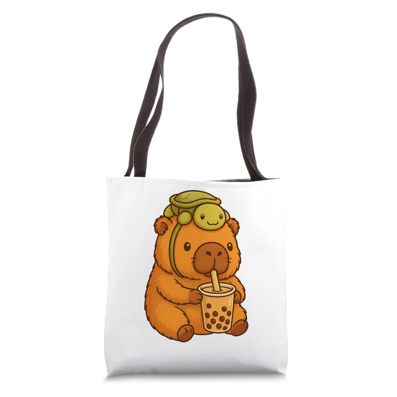Cute Capybara and Turtle Backpack Boba Tea Kawaii Capibara Tote Bag