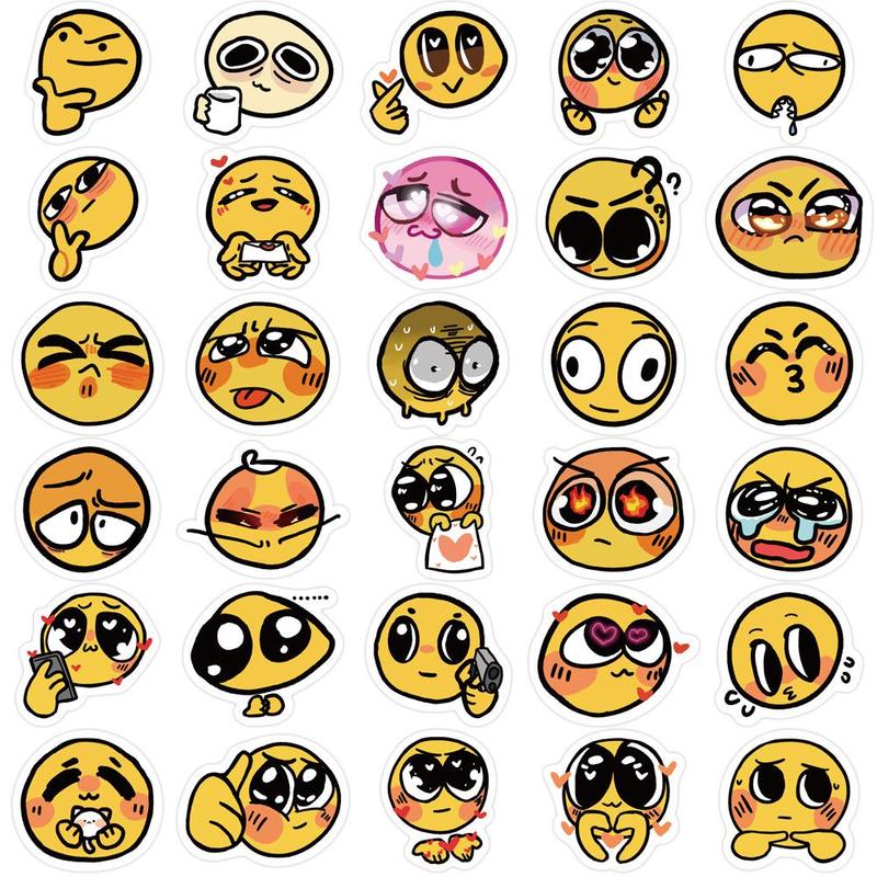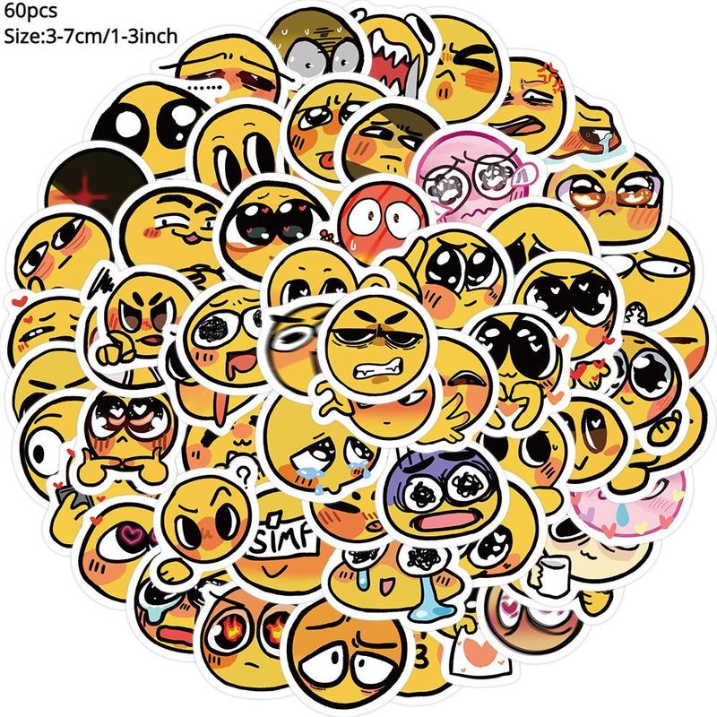 【60-piece Set】: This collection offers 60 individual waterproof stickers, featuring a variety of emotional expressions, providing a rich selection for customization.