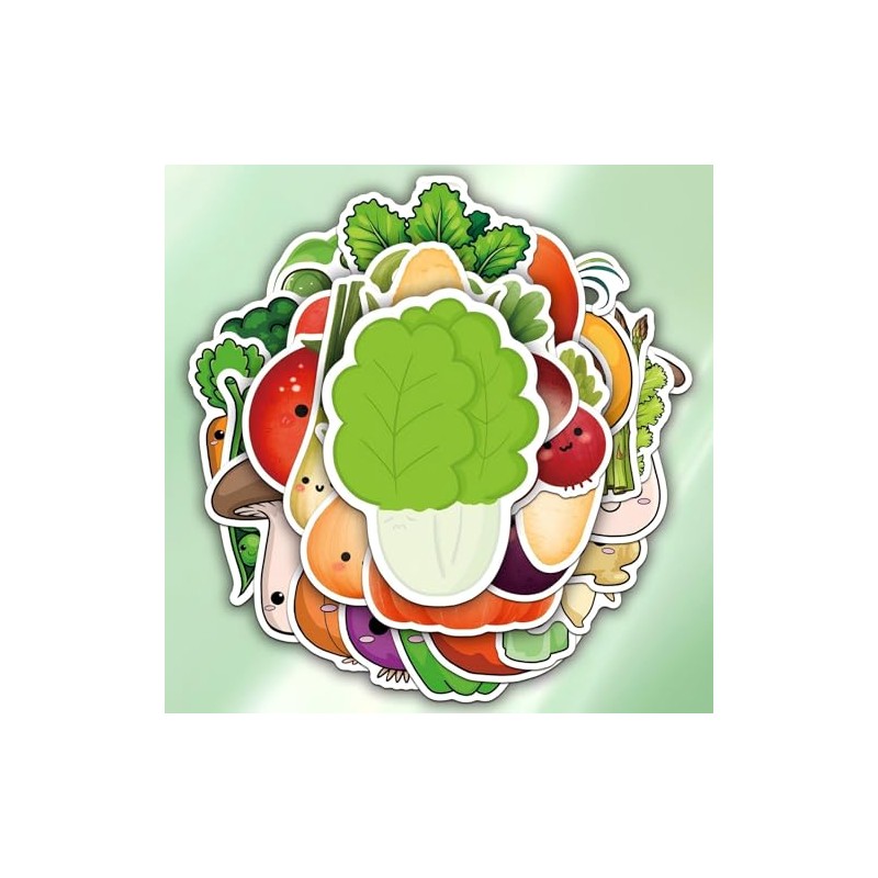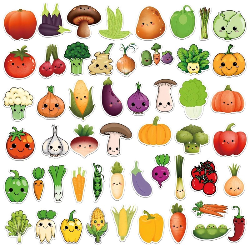 - Safe Cartoon Vegetables Sticker Pack--The sticker pack consists of 52 different cartoon vegetable stickers. Easy to stick repeatedly or peel it off and there won't be any residues.