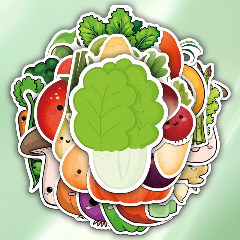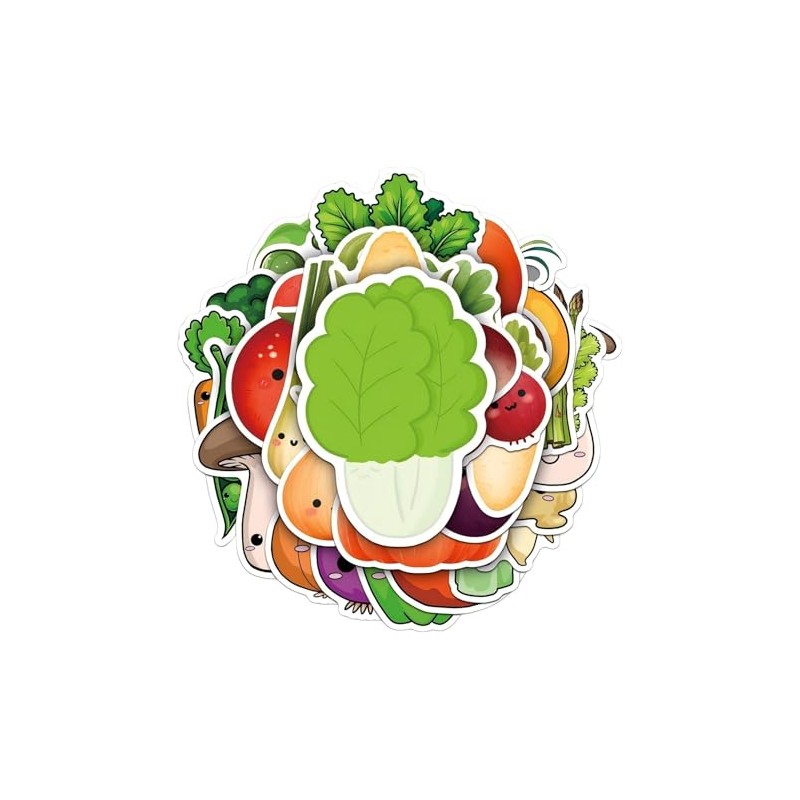 - Safe Cartoon Vegetables Sticker Pack--The sticker pack consists of 52 different cartoon vegetable stickers. Easy to stick repeatedly or peel it off and there won't be any residues.