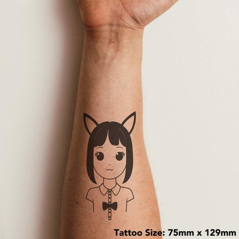 'Cute Cat Girl' Temporary Tattoo - Water Resistant, Skin-Safe, Non-Toxic Transfer (TO00078217)